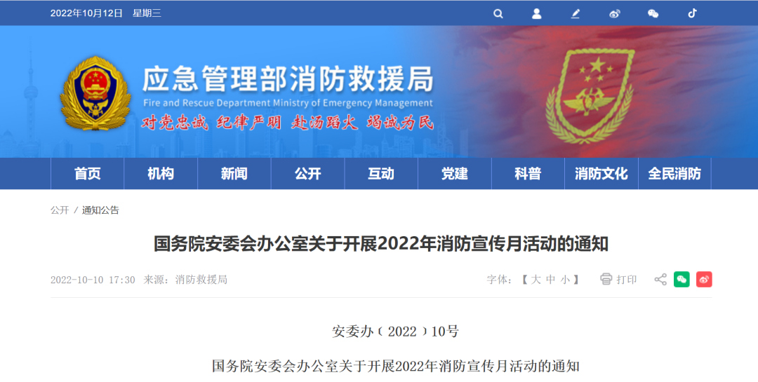 一、努力營造“全民消防”濃厚宣傳氛圍。各地區、各有關部門和單位要認真學習貫徹黨的二十大精神,深刻領會習近平總書記關于安全生產、防災減災救災等應急管理工作重要論述,結合實際制定消防宣傳月實施方案,落實工作舉措。要組織新聞媒體集中開展主題采訪行動,大力宣傳各級黨委政府、行業部門、社會單位和干部群眾落實消防安全責任、防范化解消防安全風險的工作實踐和先進經驗,做好第六屆全國119消防獎獲獎集體和個人的表彰、宣傳工作。各地要召開新聞發布會,介紹近年來消防安全工作成效以及國家綜合性消防救援隊伍在應對處置各類災害事故、保護人民群眾生命財產安全等方面的情況,營造全社會關注消防、支持消防、參與消防的輿論氛圍。各地要根據疫情防控實際,在11月10日前以適當形式舉行消防宣傳月活動啟動儀式。