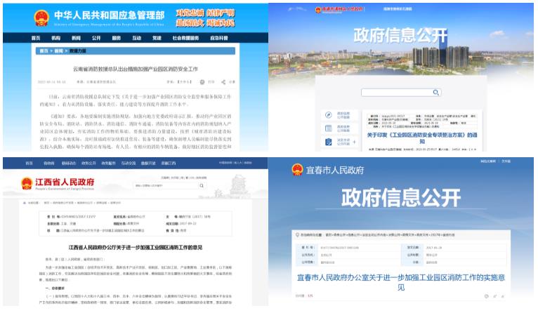 各地區監管部門對工業園區消防工作也極為重視,制定了多種相關政策引導支持工業園區消防基礎設施建設,推動了工業園消防安全工作的開展。